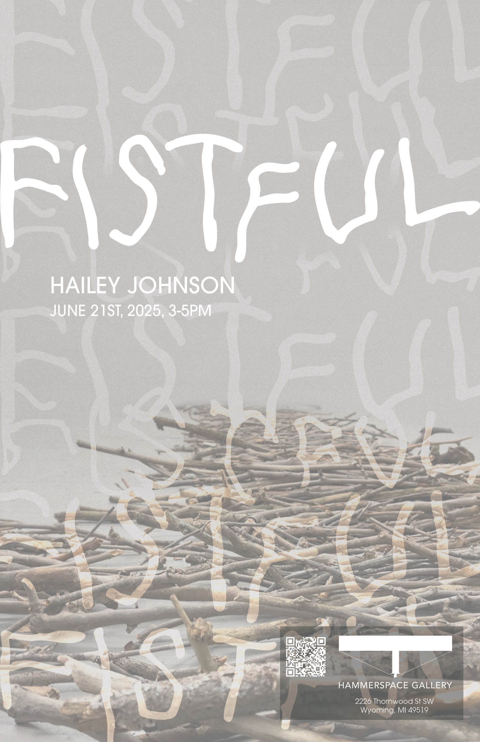 As a freelancer, I am the lead graphic designer for Hammerspace Gallery in Wyoming, Michigan. I worked directly with the gallery’s co-directors to communicate the overall aesthetics of the organization, as well as respecting the unique material of each artist’s work.